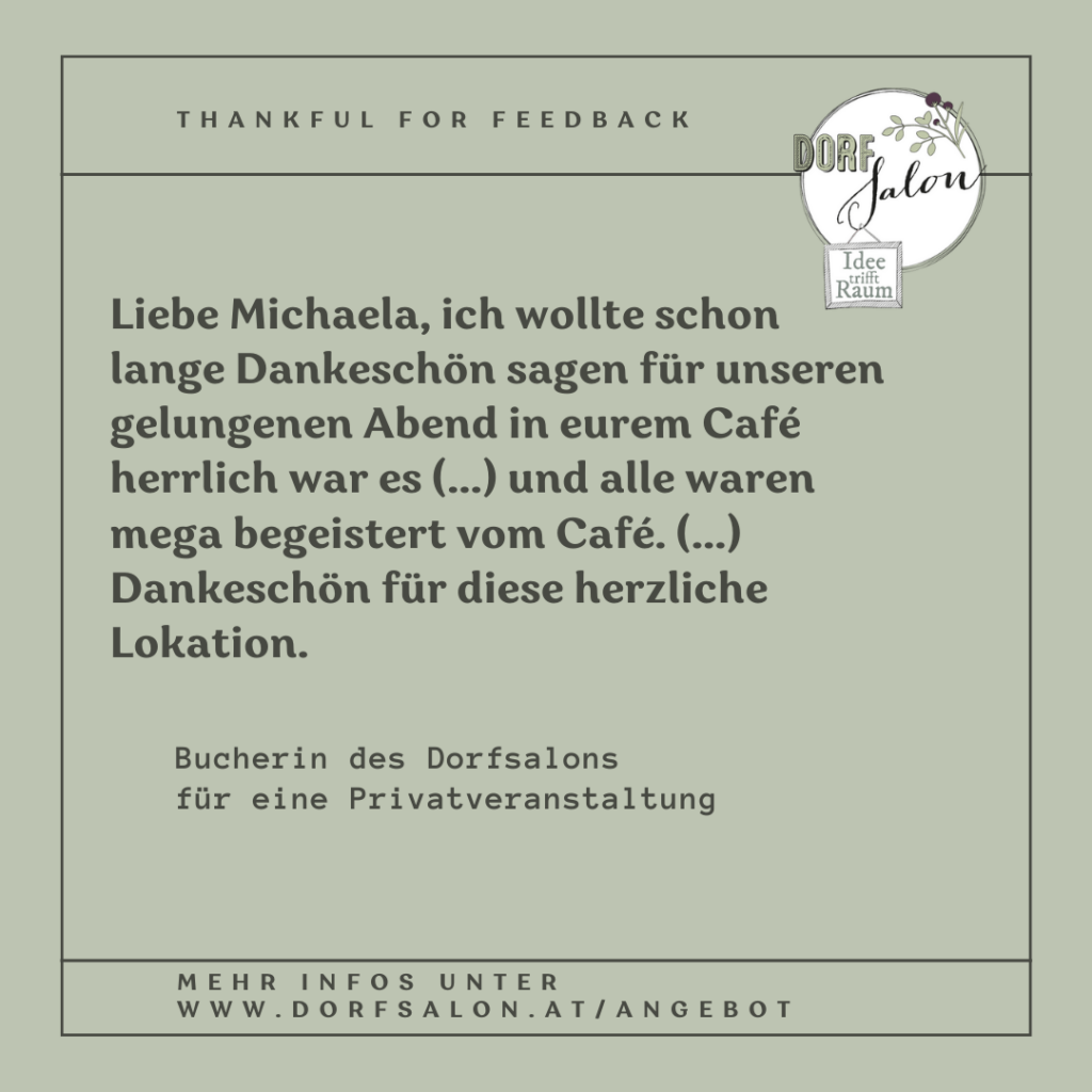 Egal ob Geburtstagsfeier, Firmenfeier oder ein Fest einfach so! Vielleicht ist ja der Dorfsalon genau der richtige Ort für dich!
