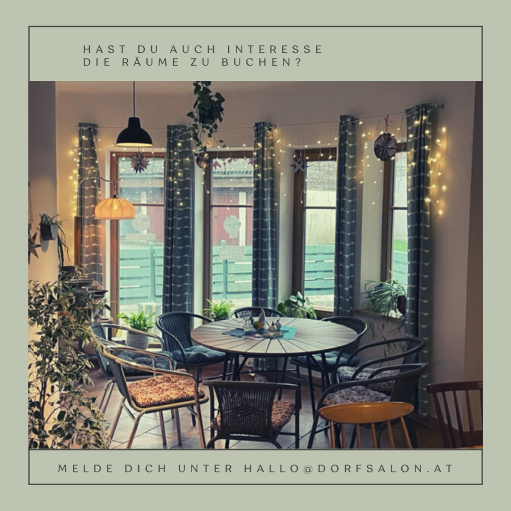 Schicke uns deine Anfrage an hallo@dorfsalon.at, kontaktiere mich gerne auch telefonisch unter 0650 / 31 15 666 oder klicke hier: <a href=“https://www.dorfsalon.at/#kontakt„>hier klicken</a>